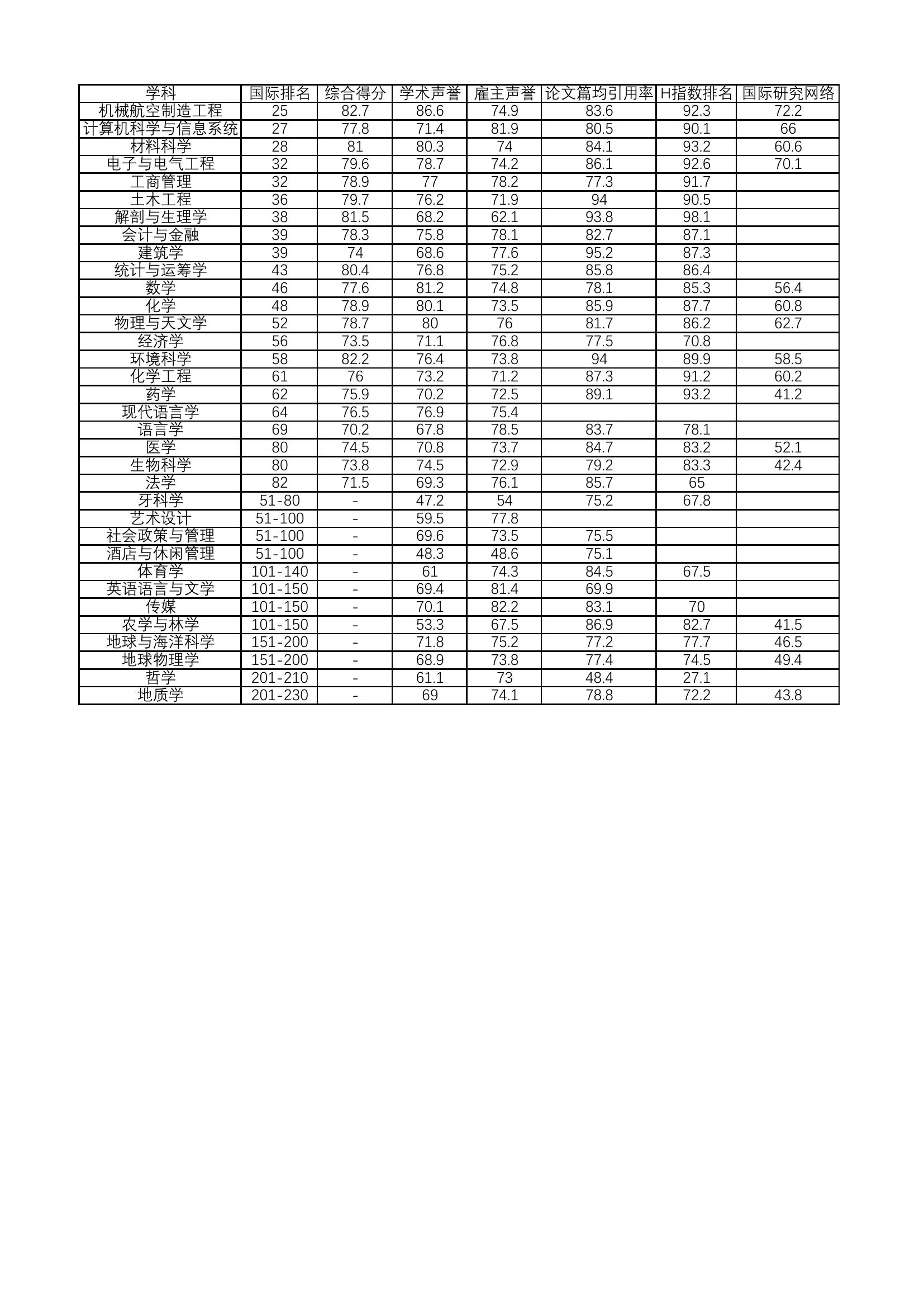 2023年星空彩票安卓最新版官网下载QS学科排名
